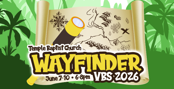 Come join us at Temple Baptist Church for our annual VBS for 2 year olds all the way to 5th graders!